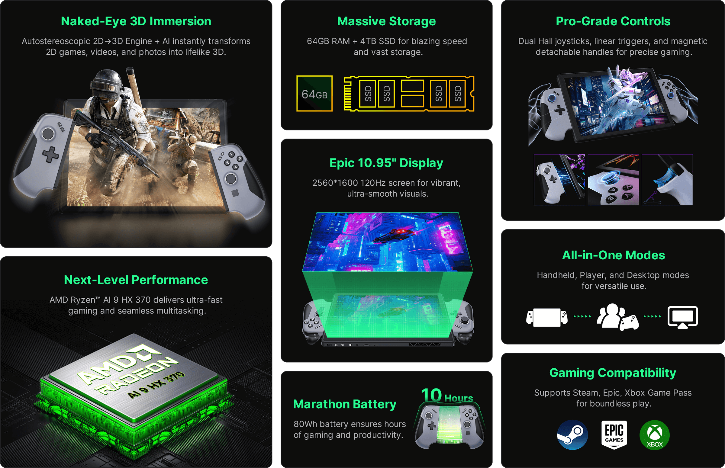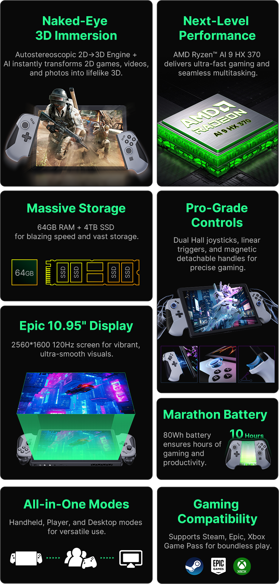Dive into endless gaming and productivity with DigiEra HoloMax. Fully compatible with Steam, Epic, EA, Xbox Game Pass, WeGame, and more—plus Windows 11 lets you run all your favorite PC apps. Play any game with thrilling glasses-free 3D and enjoy high-performance, ultra-smooth visuals. Work, create, and game like never before—all on one powerful device.