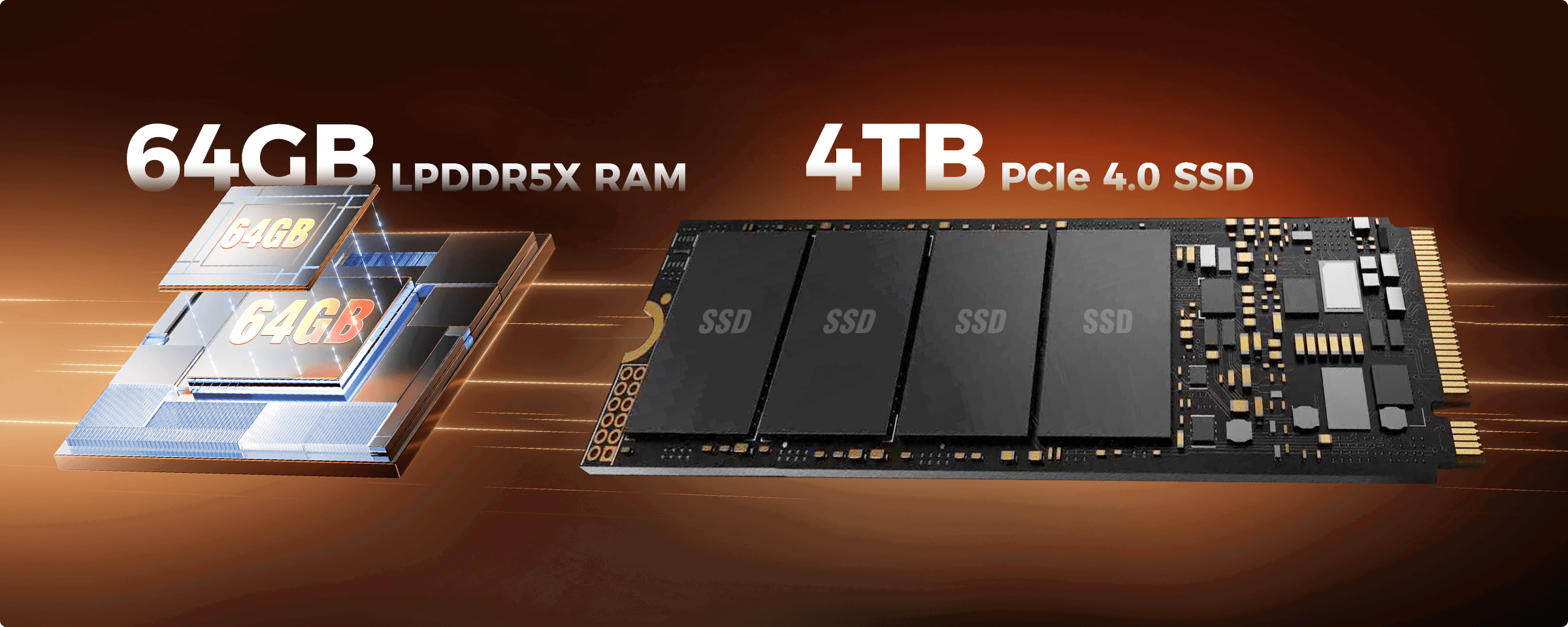64GB LPDDR5X RAM + 4TB PCIe 4.0 SSD